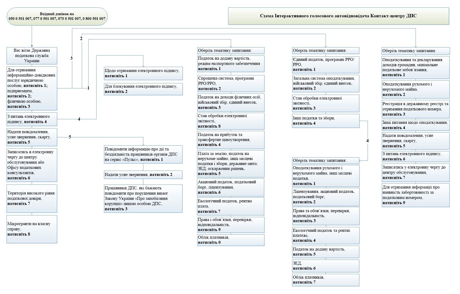 Інформація, яка надається за допомогою автовідповідача, систематизована за напрямами у багаторівневому IVR: